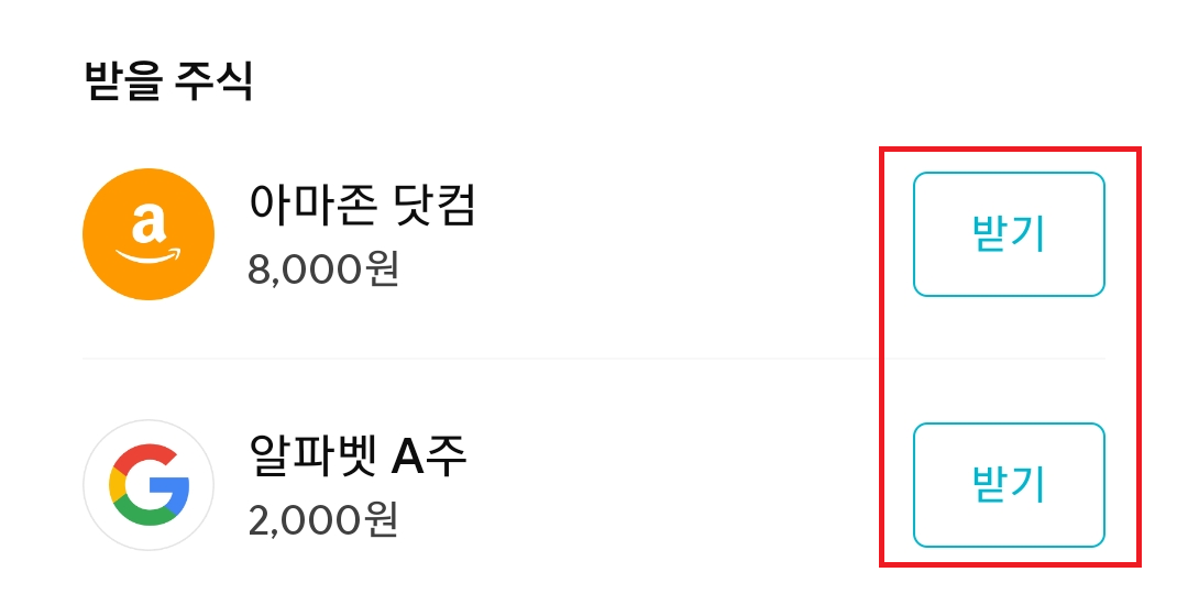 나는 아마존을 사고 싶었으므로, '아마존 주식받기'를 선택하고 넘어간다.