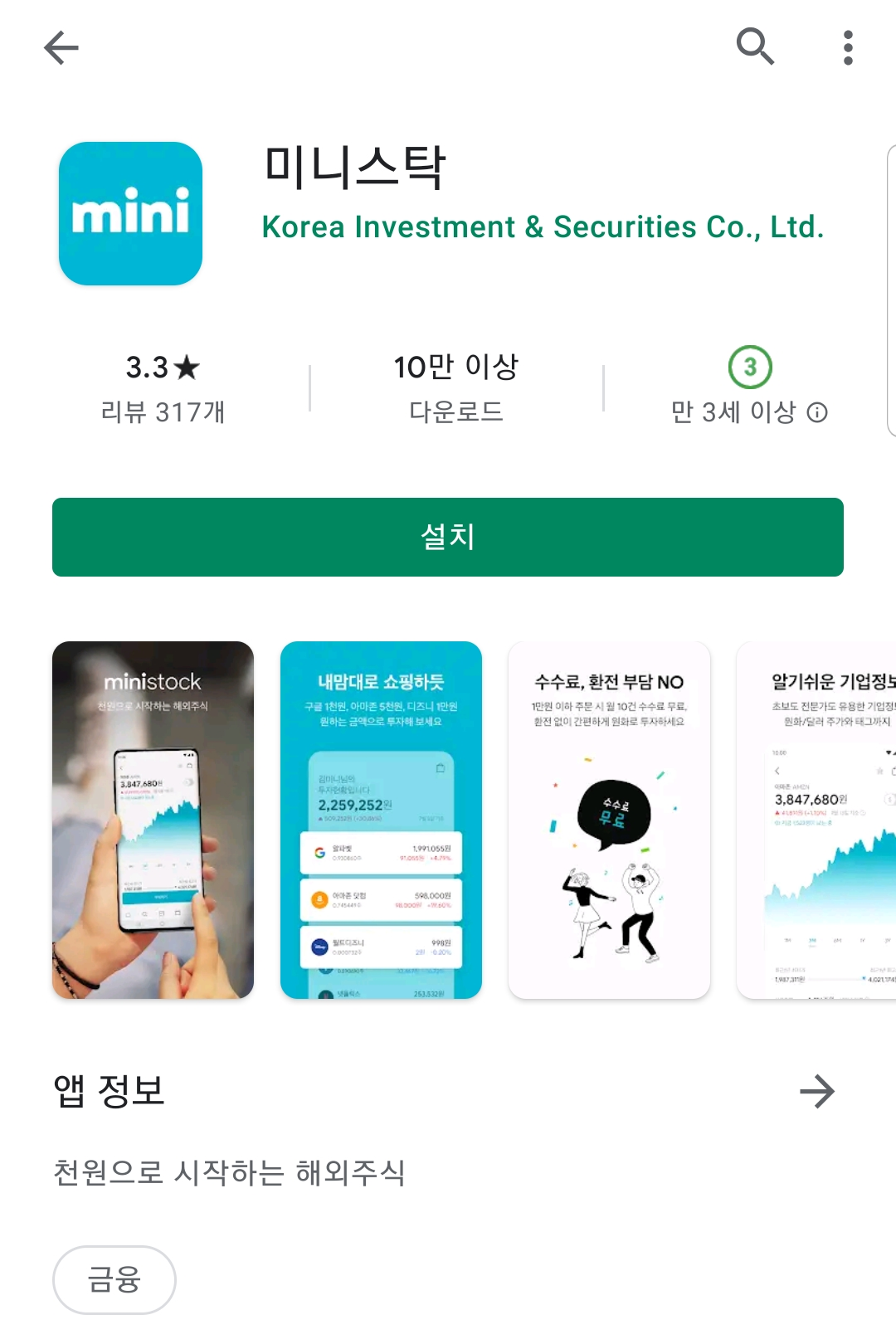 아래 주소로 접속하면 미니스탁 구글 플레이 페이지로 이동한다.