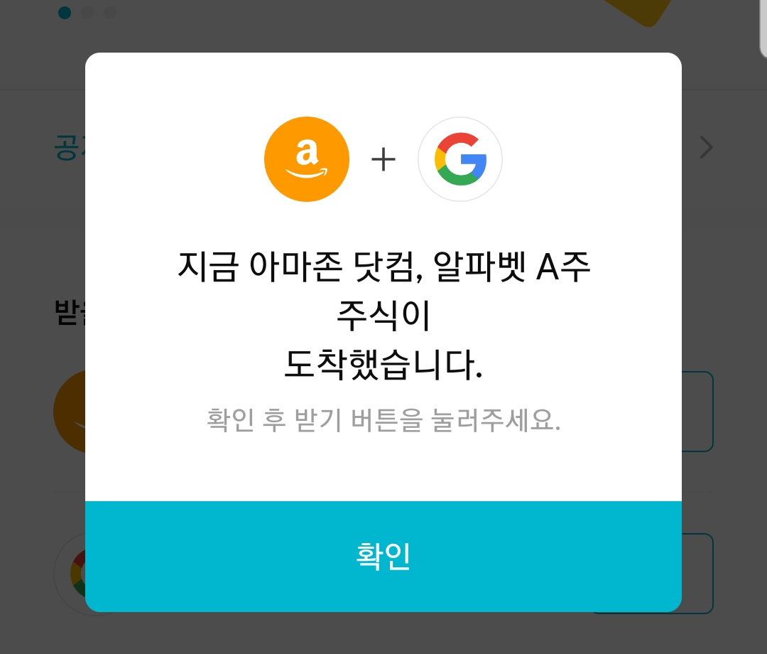 이제 로그인하면 주식이 도착했다는 팝업이 뜬다.