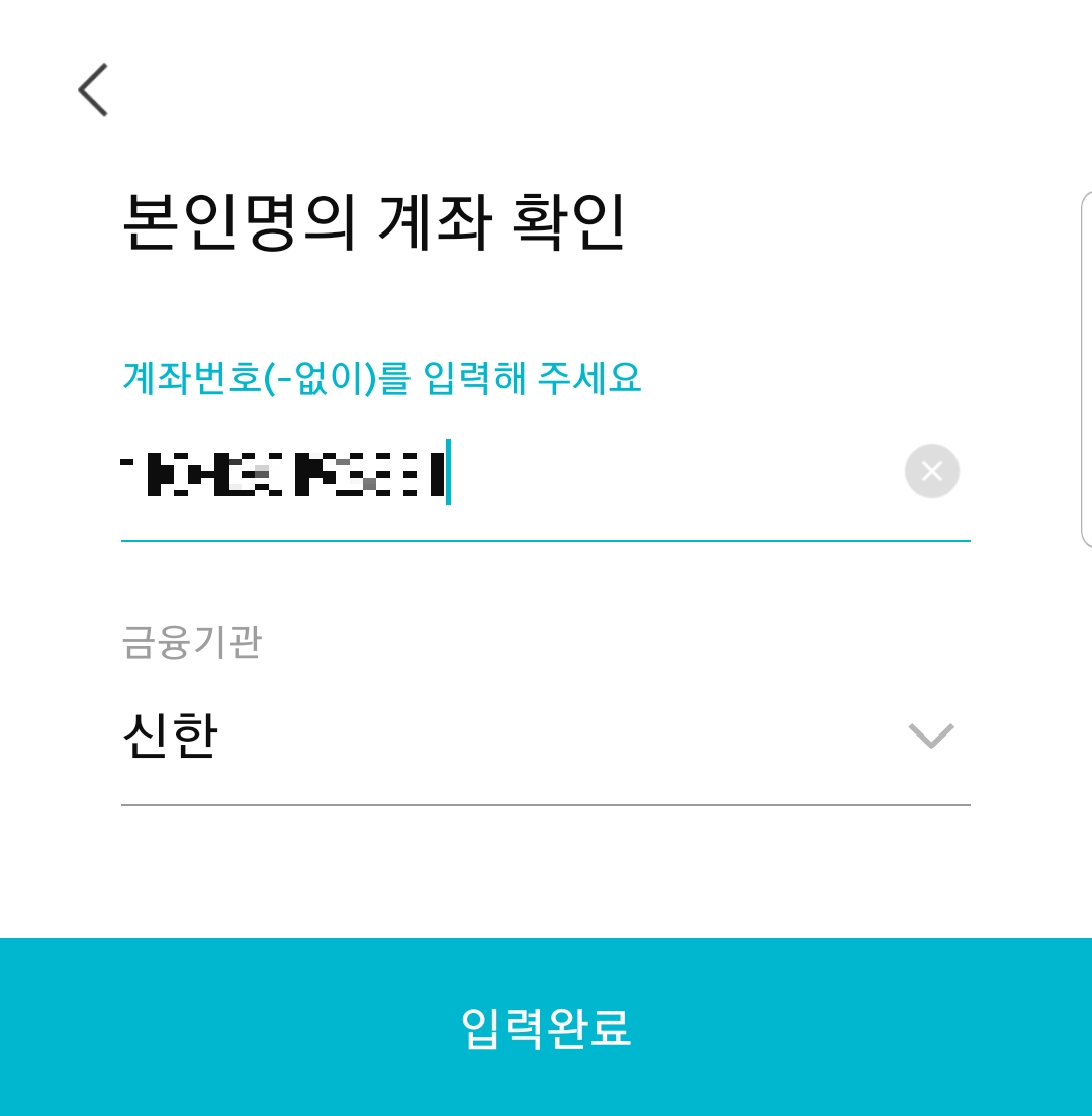 '본인 명의 계좌 확인' 페이지에서는 본인이 주로 사용하는 계좌번호를 적으면 된다.