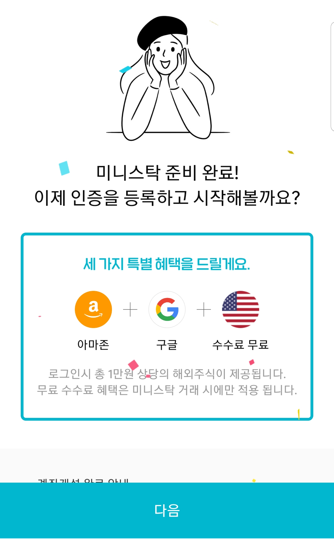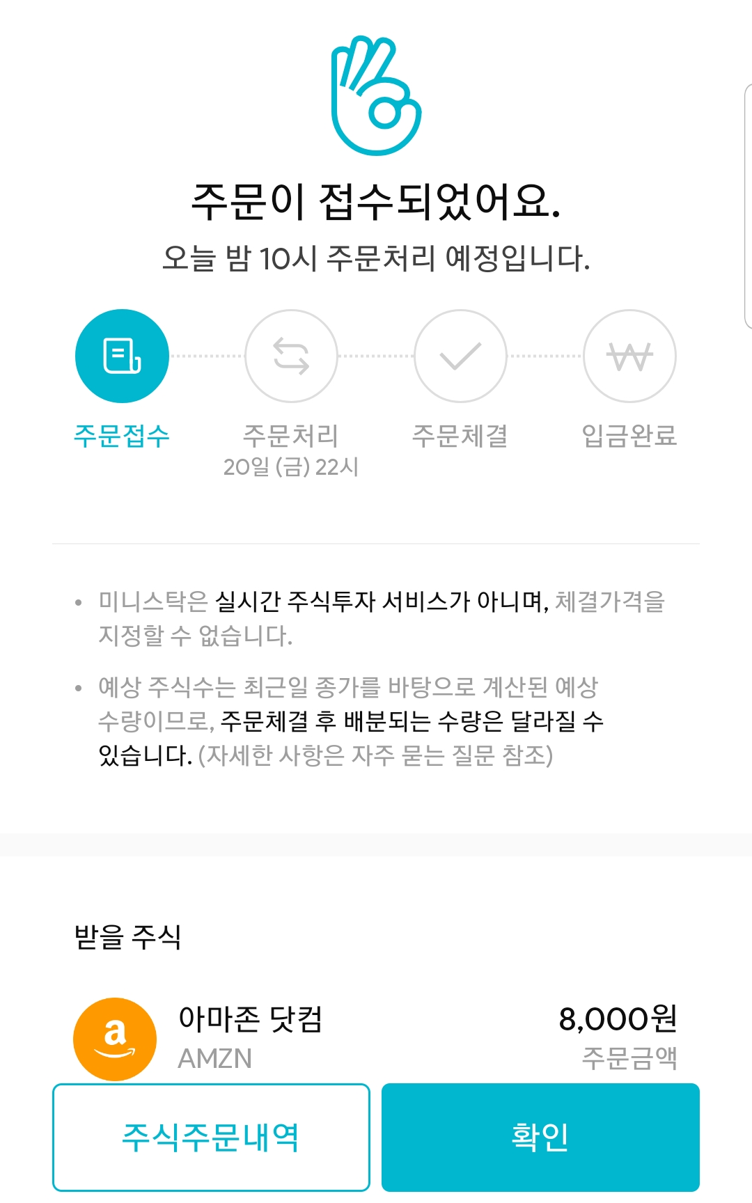 나는 아마존을 사고 싶었으므로, '아마존 주식받기'를 선택하고 넘어간다.