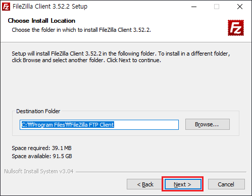 파일질라는 광고가 포함된 추가 프로그램 설치를 요구하거나 시작 페이지 변경 옵션은 없으므로 보통은 Next만 클릭하면 되겠다.
