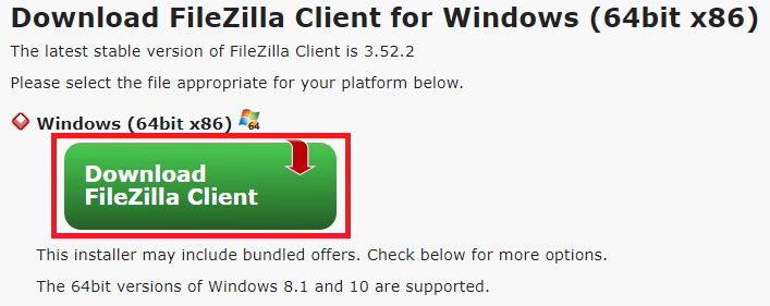 파일질라 공식 사이트 접속 후 'Download FileZila Client'를 클릭한다.