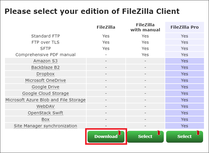 파일질라는 아래의 공식 사이트(영문)에서 다운로드 가능하다.