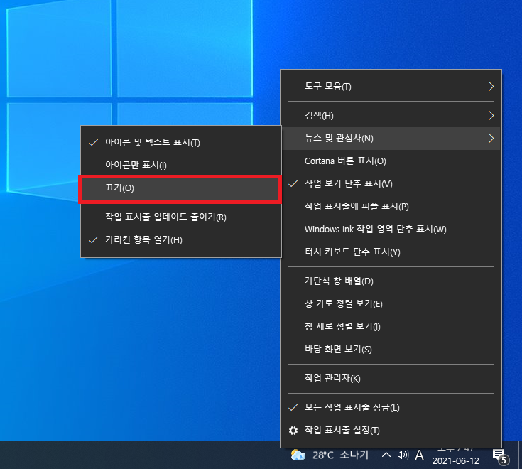 작업표시줄 날씨/뉴스 아이콘 제거 방법