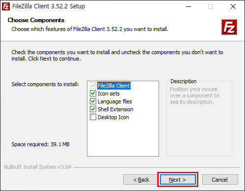 파일질라는 광고가 포함된 추가 프로그램 설치를 요구하거나 시작 페이지 변경 옵션은 없으므로 보통은 Next만 클릭하면 되겠다.
